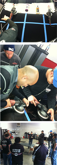 By Thursday, we got into hands-on technique. Hand and machine sanding, and scratch removal are intricate, precision processes. When you consider that the thickness of an automobile’s clear coat is less than the thickness of a dollar bill; and over the lifetime of a car, you would never want to remove more than 25 percent of that thickness; you can understand why a process called wet sanding or grit sanding sounds harsh. Add to that a powerful electronic machine that if misused, could burn through the clear coat and paint down to the metal. You can imagine the importance of knowing what you are doing when color-correcting an $80,000 vehicle. I would say that the car owner driving a $10,000 car wouldn’t appreciate it either!